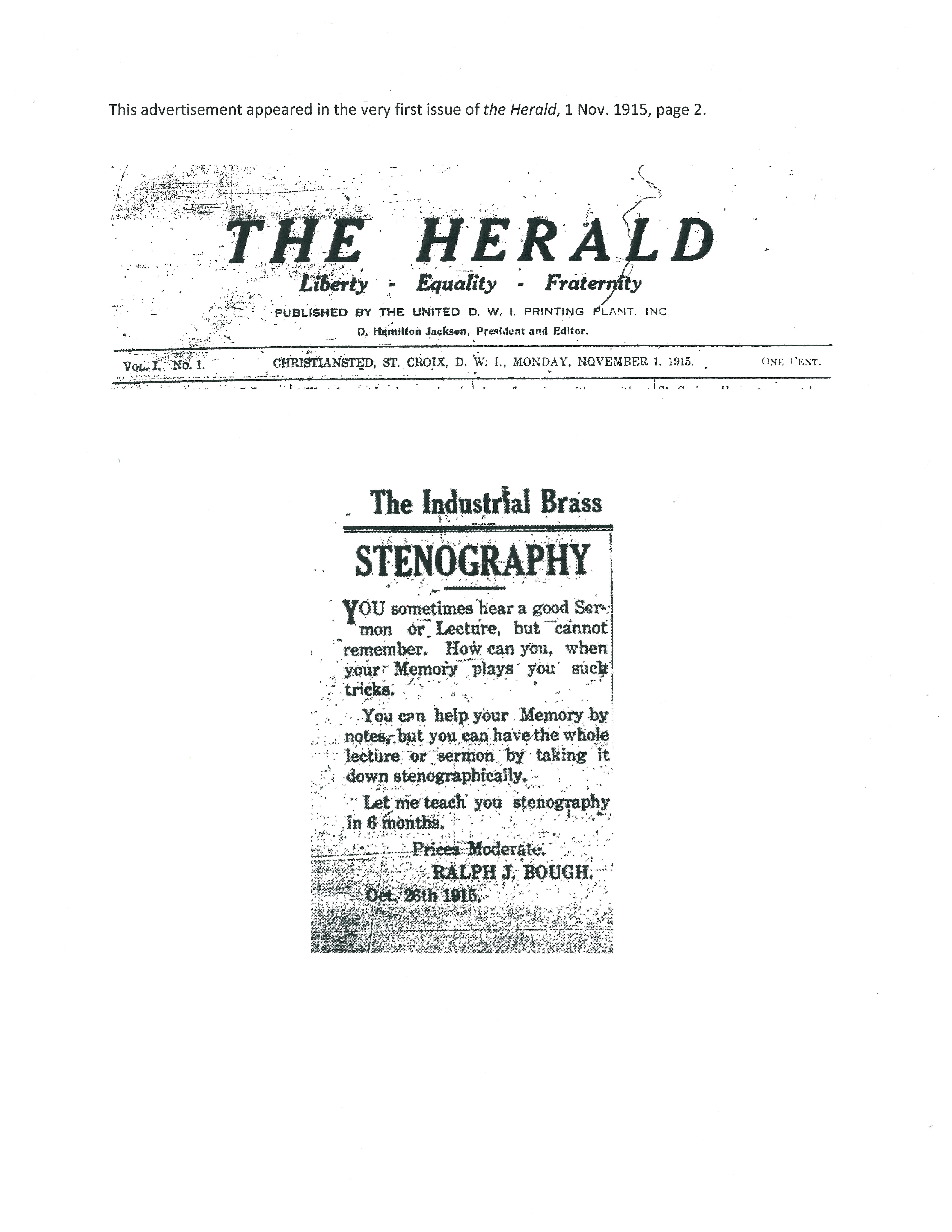 My Gene Buddy was looking through the Newspaper Archives for St. Croix US Virgin Islands when she came across the Ad below that was placed by one of my ancestors. As I read the advertisement, I thought about the radio spots I use to write, in my attempt to create catchy phrases to catch listeners. I Laughed Out Loud…..at the angle Ralph Bough used in 1915 to catch the attention of the readers.