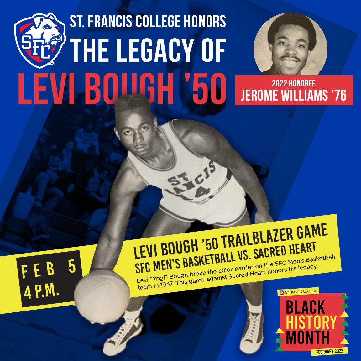This year, the St. Francis Athletics department will honor Terriers men’s basketball Hall of Famer Jerome Williams (class of ’76) with the Levi Bough Trailblazer Award. St. Francis College is located in Brooklyn Heights, N.Y.